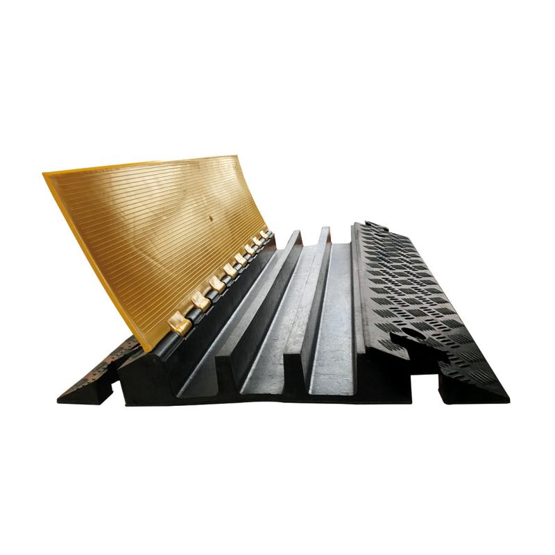 Designed to accommodate cables up to 55 mm in diameter, the 3-Channel Cable Protector ensures your cables are shielded from the wear and tear caused by constant traffic. The protector features a durable rubber main module that offers superior resilience and impact resistance, while the highly visible yellow plastic top cover enhances safety awareness, especially in high-traffic environments.